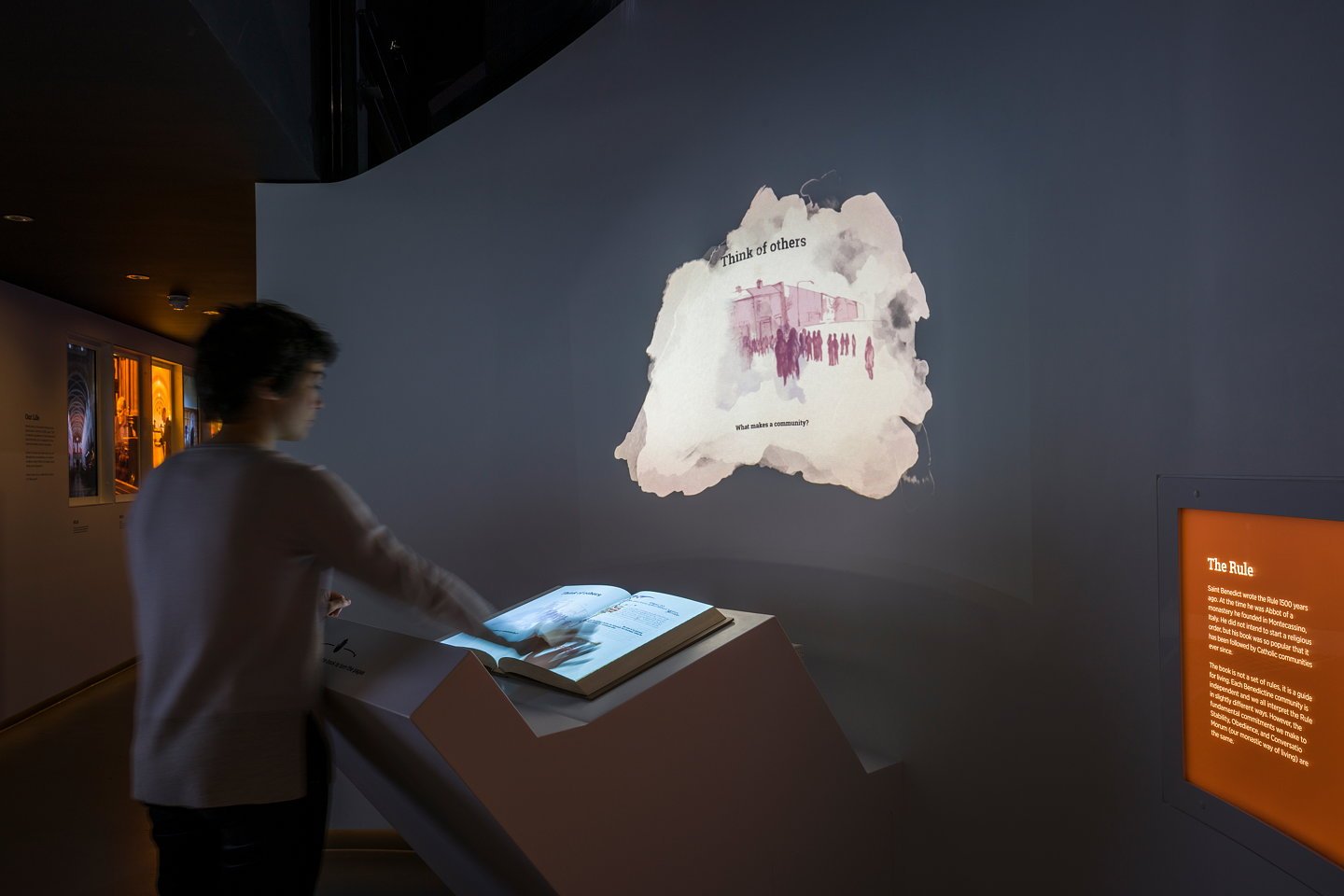 The Interactive Projection book which works as a companion to connect your guest to virtual world. Interactive projection book uses two cameras and a laser light source projector to create a dynamic, animated experience that is both tactile and rich. A sensor mounted above the book tracks visitors’ hands and allows them to trigger animations simply by touching the page, bringing the book to life. Printed decorative designs on each page are also tracked, allowing the correct digital content to be projected on to the book’s pages whenever a visitor turns a page.